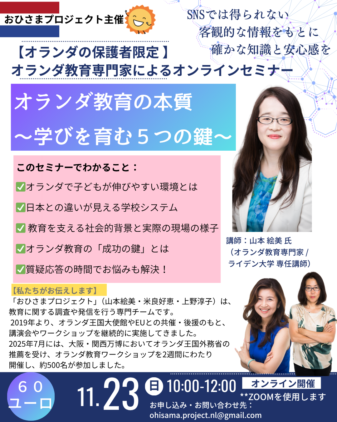👤対象:オランダ在住の保護者限定またはオランダ教育移住を検討されている方