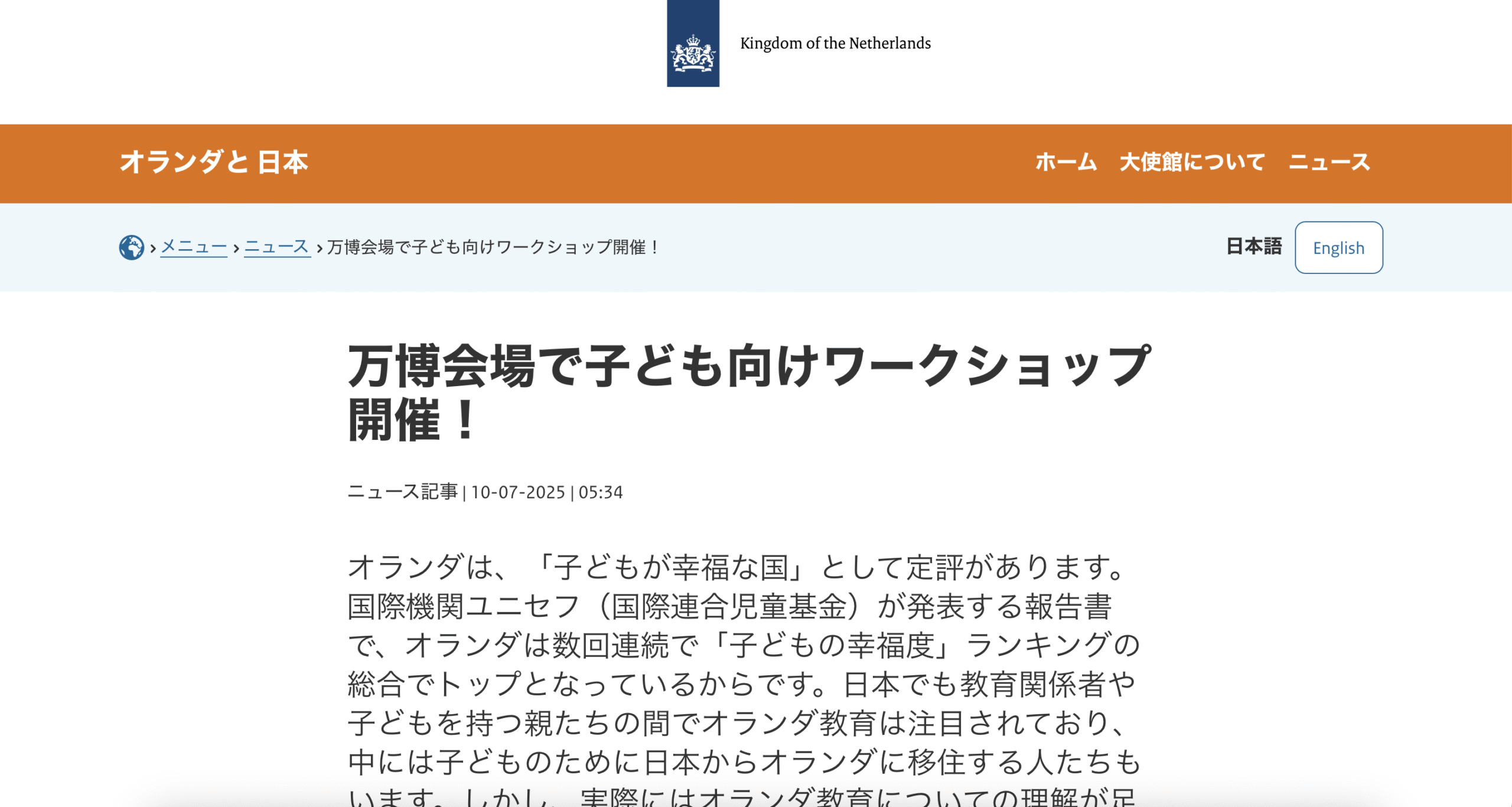 記事の中では、オランダ教育の特徴である「子どもの主体性」や「多様性の尊重」、そして日本との教育的なつながりについてお話ししています。